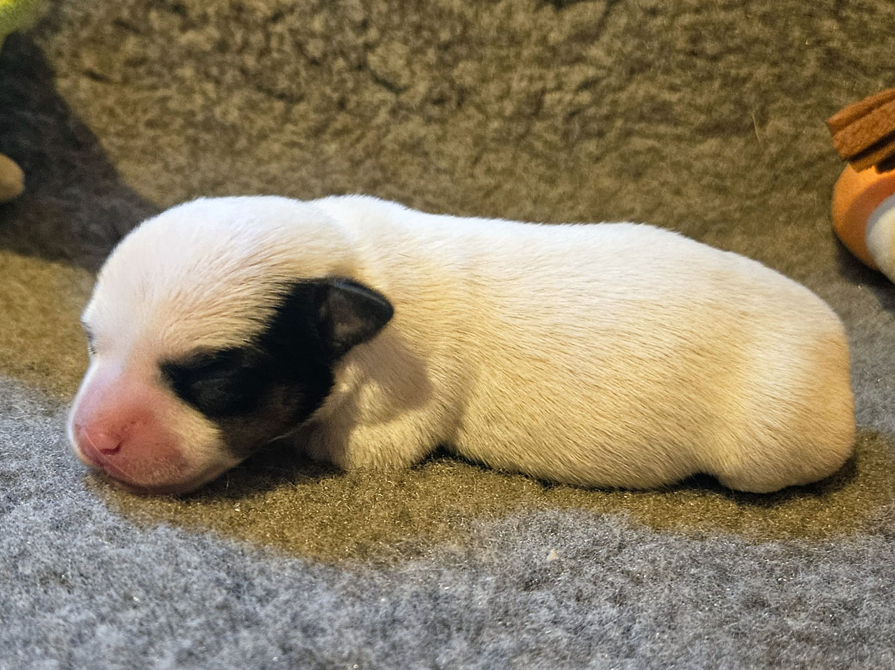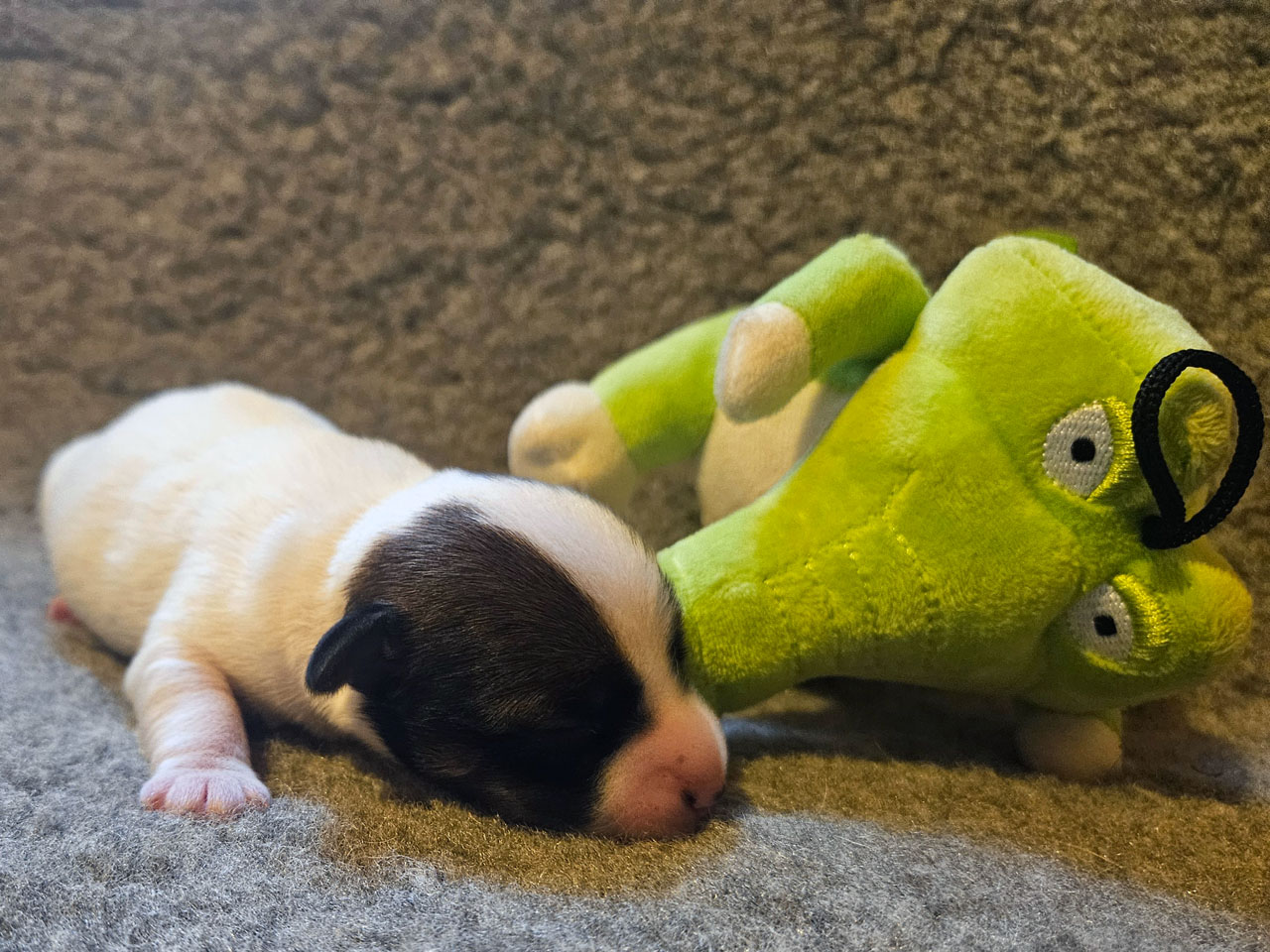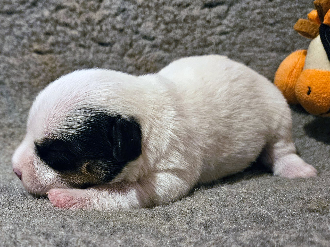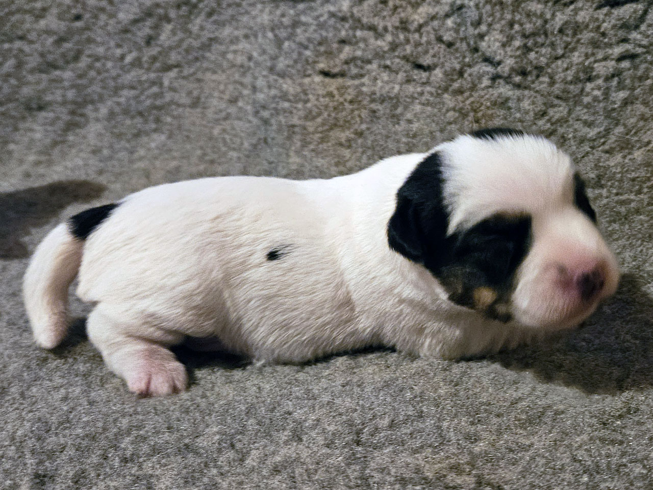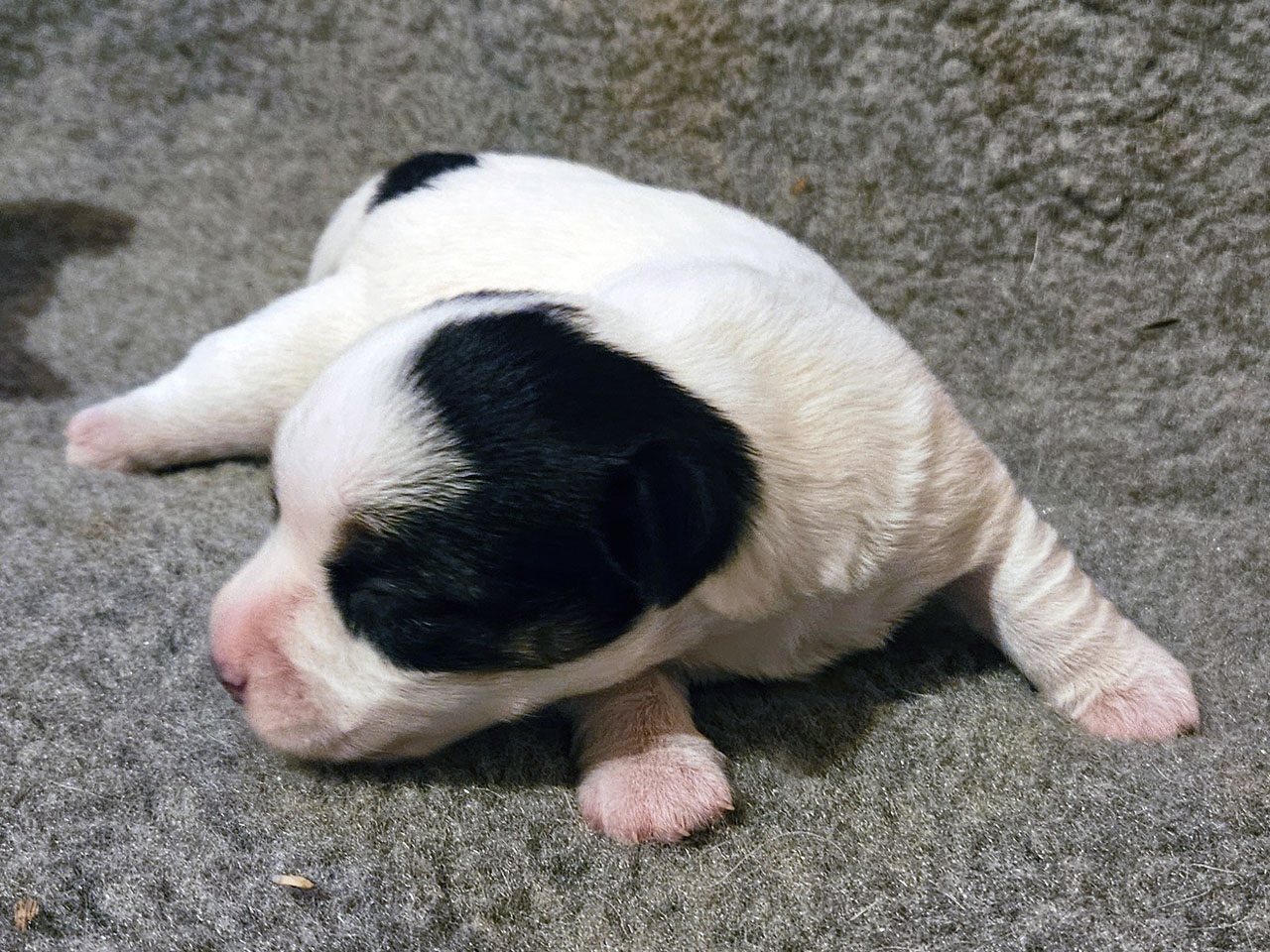 L'identification de la maman Rosie The Magnificent Fox Hunter est 250 269590189030, en 2025 nous avons fait 5 portées, c'est la première cette année. C'est la troisième portée de Rosie qui avait 5 ans et 5 mois à la mise bas.