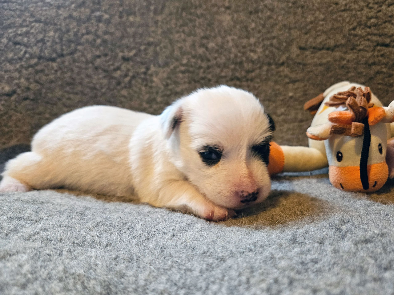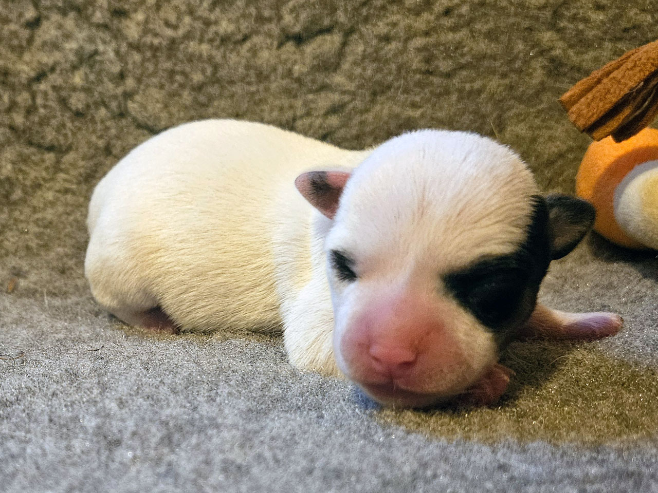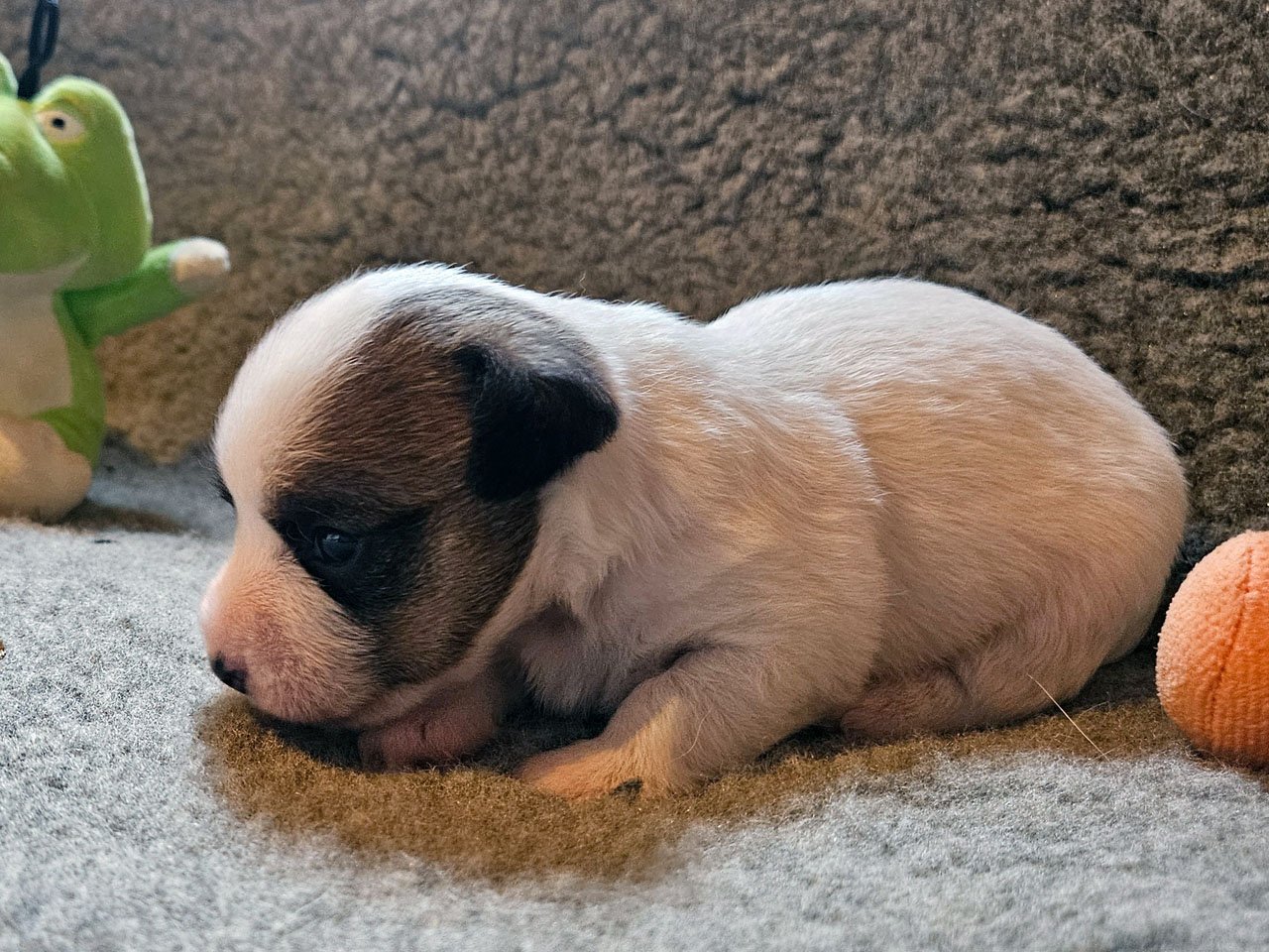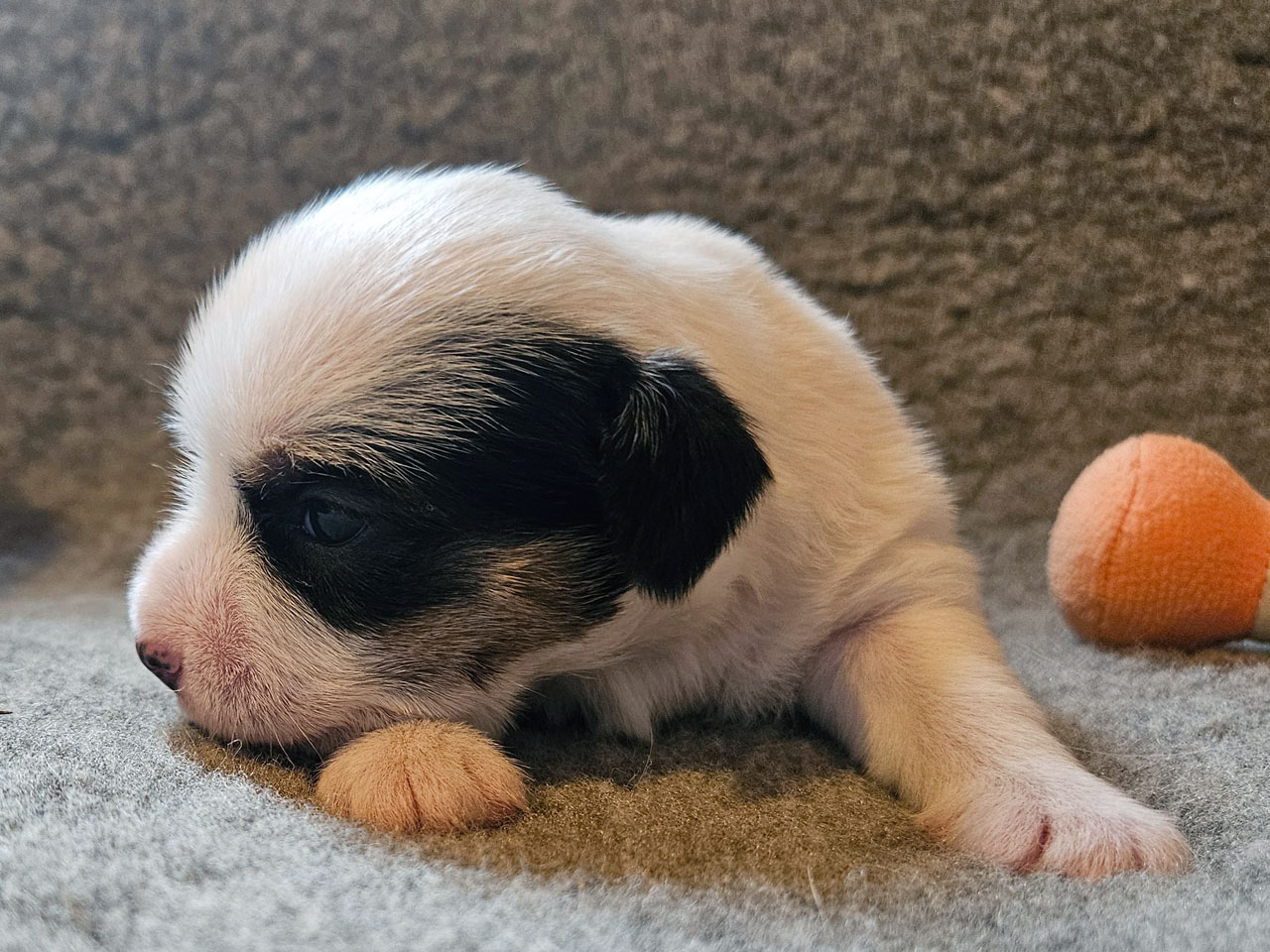 L'identification de la maman Rosie The Magnificent Fox Hunter est 250 269590189030, en 2025 nous avons fait 5 portées, c'est la première cette année. C'est la troisième portée de Rosie qui avait 5 ans et 5 mois à la mise bas.