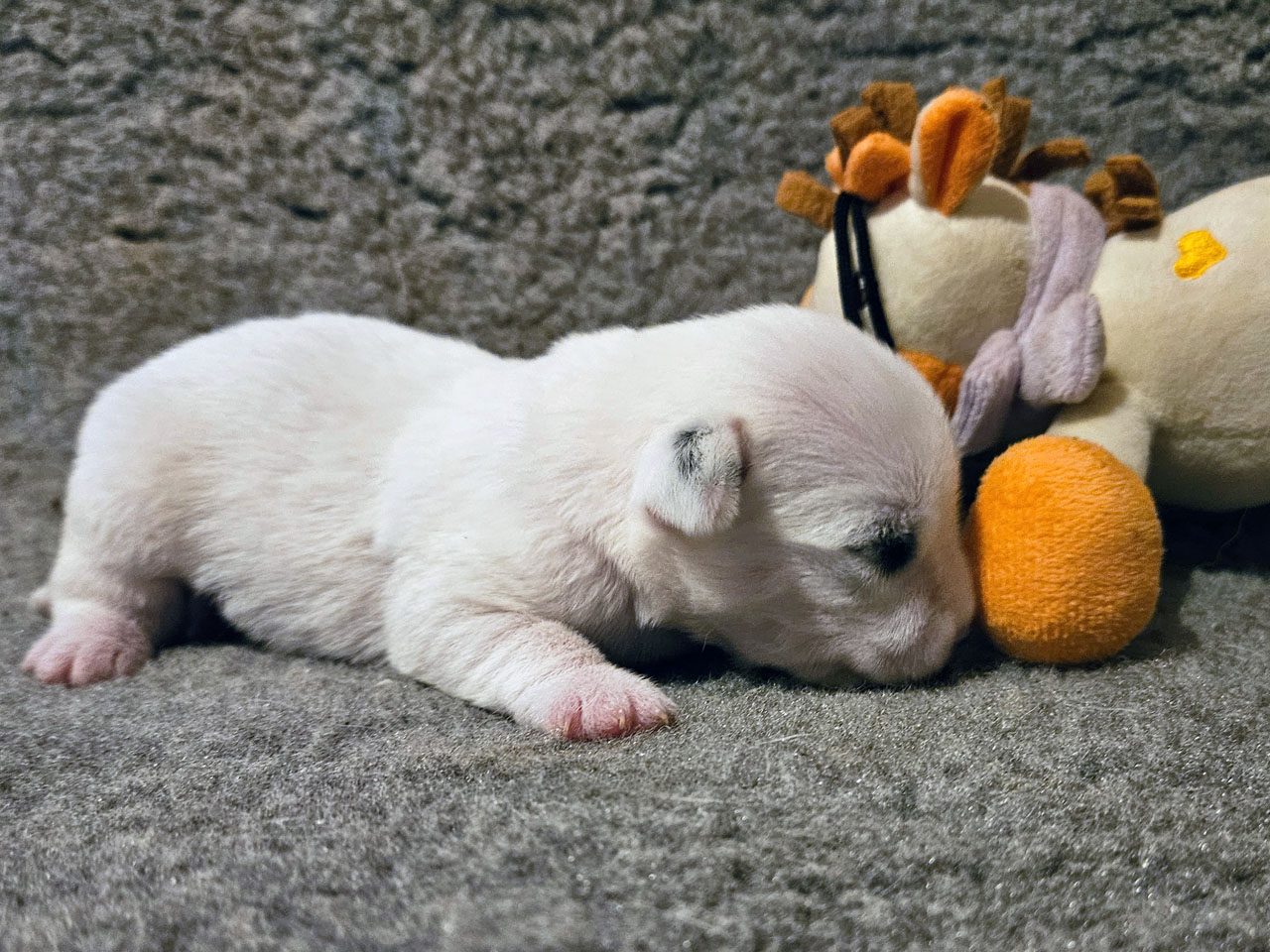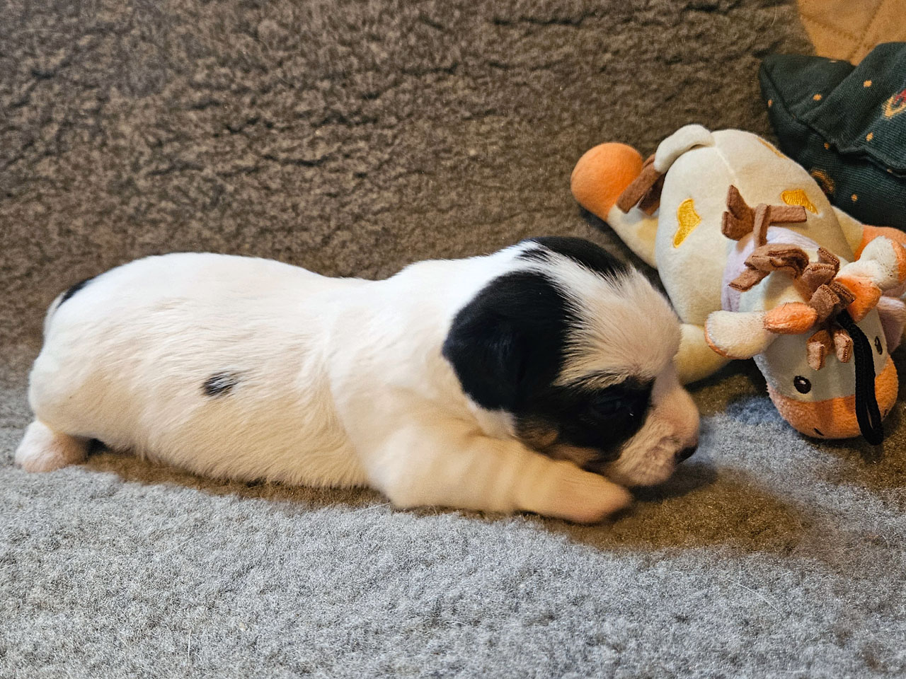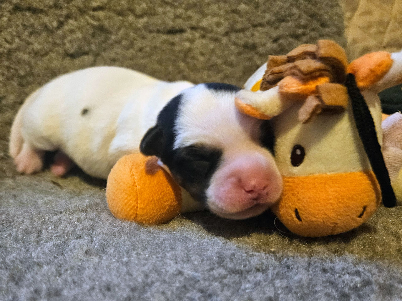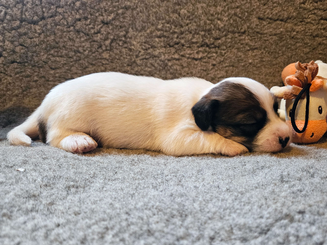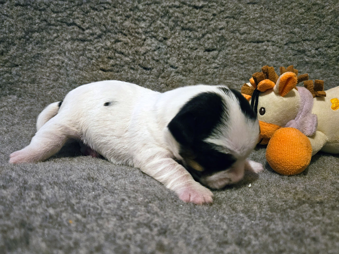 L'identification de la maman Rosie The Magnificent Fox Hunter est 250 269590189030, en 2025 nous avons fait 5 portées, c'est la première cette année. C'est la troisième portée de Rosie qui avait 5 ans et 5 mois à la mise bas.