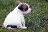 mâle Jack Russel Terrier tricolore, il a un demi masque gauche et un coquard droit.